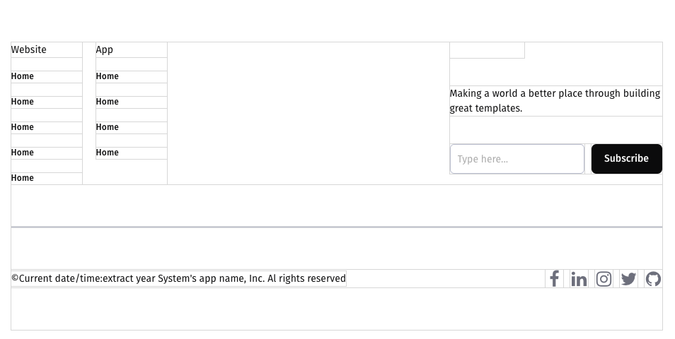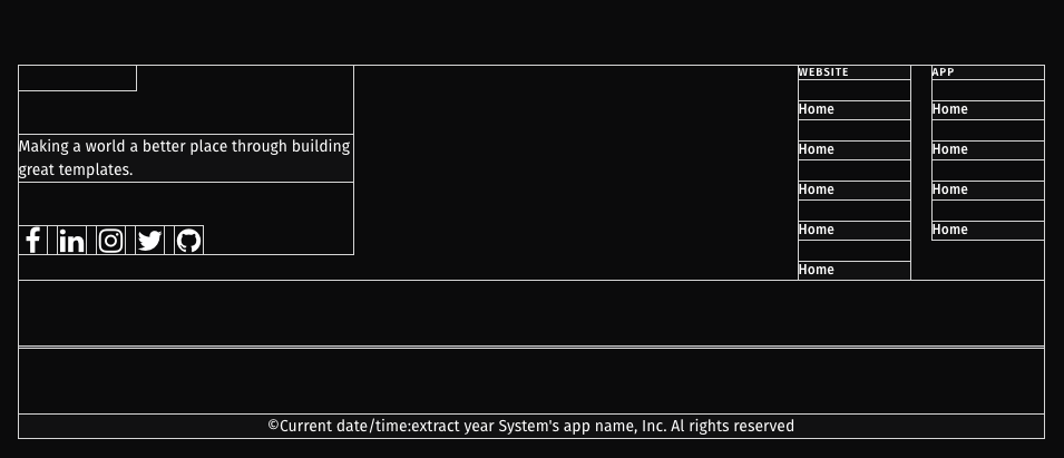 openBuild has two reusable footers that you can edit to your liking.