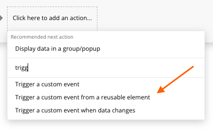 When we place a reusable element on the page or inside another reusable element we do get access to an action called *Trigger a custom event from a reusable element.*