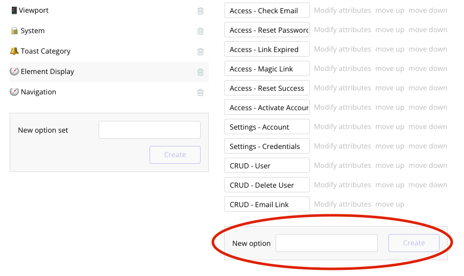 <figure><img src="https://3323346004-files.gitbook.io/~/files/v0/b/gitbook-x-prod.appspot.com/o/spaces%2FW4eajJmOk3q8BX2WzhCG%2Fuploads%2F9mf7MhHnxX5UaNCt0r6L%2FScreenshot%202023-02-09%20at%2009.58.54.png?alt=media&#x26;token=4762538f-f81c-4f86-b129-0d6d88ef8fb3" alt=""><figcaption><p>We want to show CRUD User section so we pass 'CRUD - User' from Nav reusables Option Set</p></figcaption></figure>